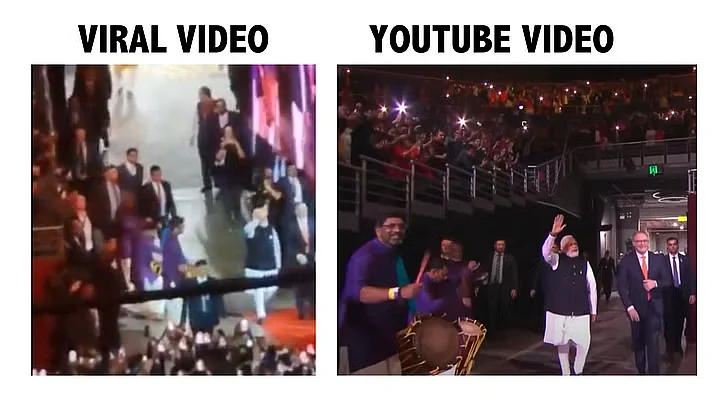 हमने और तुलना की : वेबकूफ टीम को एक और वीडियो मिला, जिसमें पीएम मोदी और ऑस्ट्रेलिया के पीएम अल्बानीज को सिडनी के कूडोस बैंक स्टेडियम में आते देखा जा सकता है.