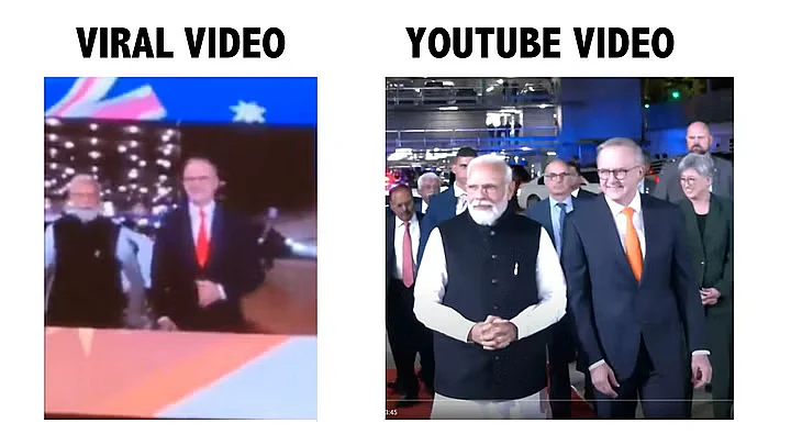 हमने देखा कि प्रधानमंत्री मोदी का उनके ऑस्ट्रेलियाई समकक्ष द्वारा स्वागत किए जाने के विजुअल्स वायरल वीडियो के कीफ्रेम्स से मेल खाते थे.