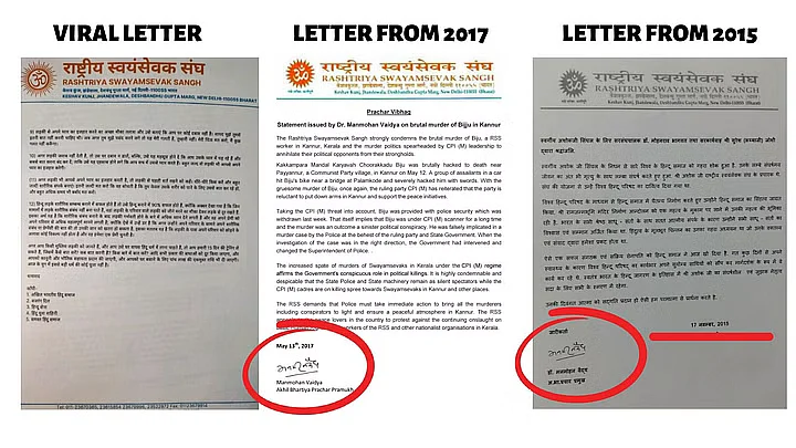 हमने RSS की ओर से जारी किए गए पुराने लेटर चेक किए. हमें लेटर के फॉर्मैट और लोगो से जुड़ी कई असमानताएं मिलीं.