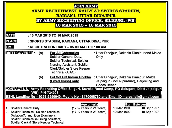 हमें 'Join Indian Army' वेबसाइट में एक नोटिफेकेशन मिला, जो नवंबर 2019 में महाराष्ट्र के रत्नागिरी में आयोजित एक सेना भर्ती रैली से संबंधित था. हमने इस नोटिफिकेशन में देखा तो पाया कि तब भी उम्र से जुड़ा क्राइटेरिया यही था, जो अभी है.