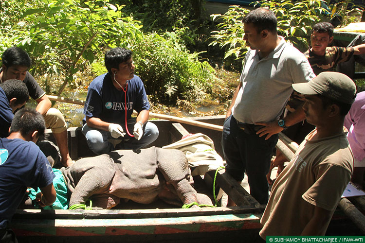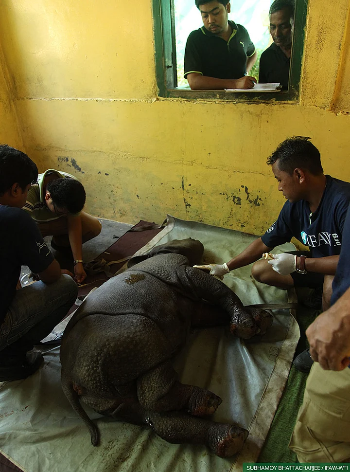 He is missing her acutely, is frightened and tries to attack his caretakers. Today for the first time he took some milk. Also a rhinoceros calf will not “go the bathroom’’ unless he can find his own mother’s toilet pit. This means more distress until he learns to make his own pit.Dr. Panjit Basumatary, Wildlife Veterenarian, WTI-IFAW