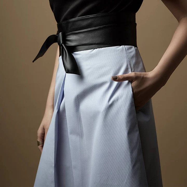 Obi belts add structure to the look. The Label Life has some interesting options in metal. But we are not sure how comfortable they will be for long workdays.