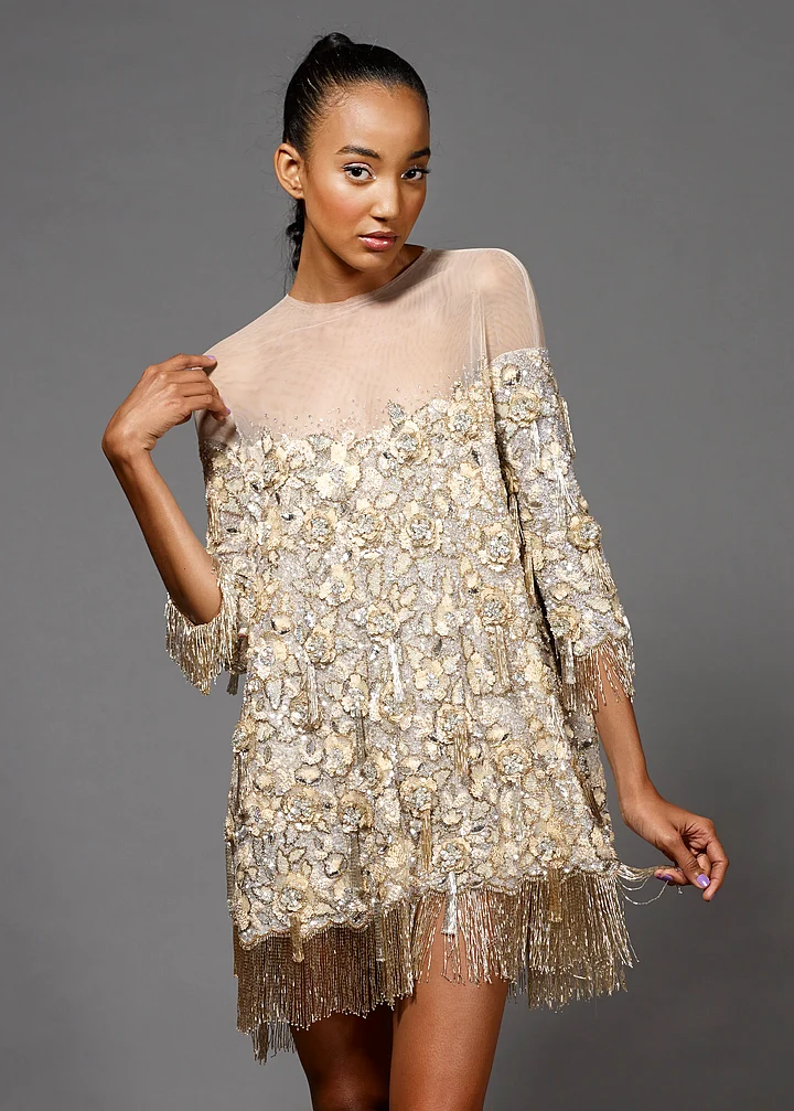 - 01/04Paper shred fringes reminiscent of the 1920s flapper trend. (Photo: Manish Malhotra)