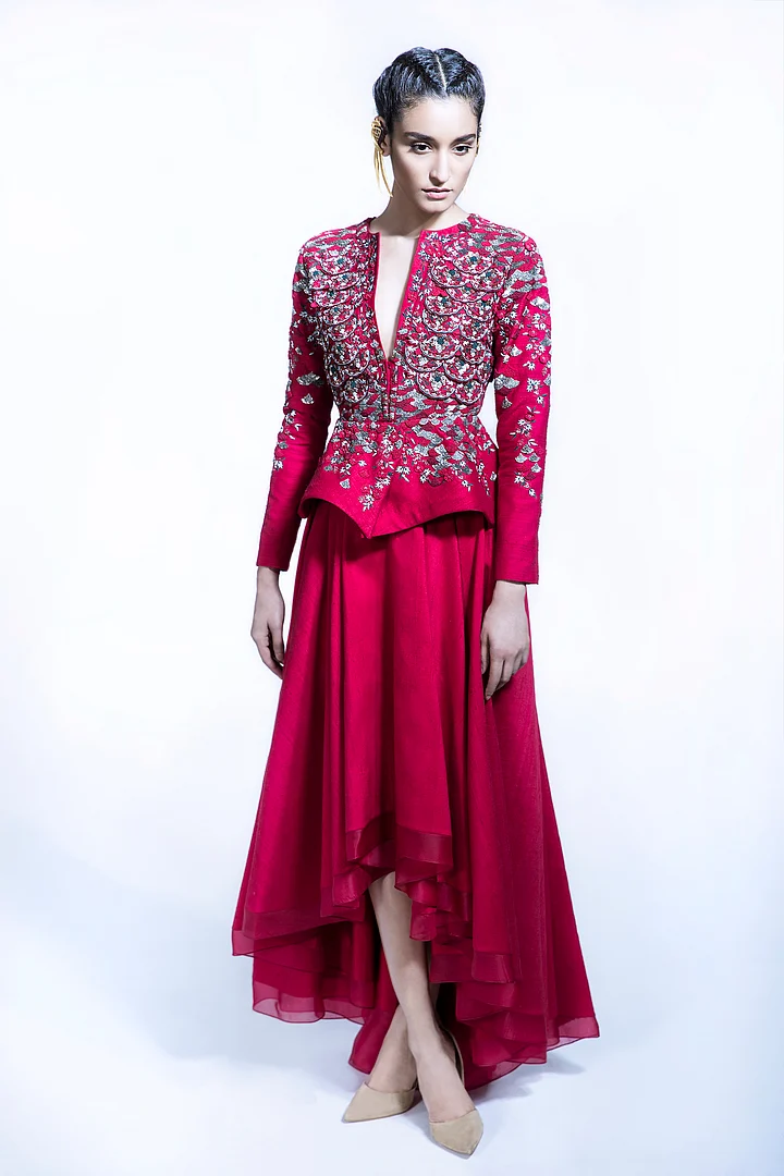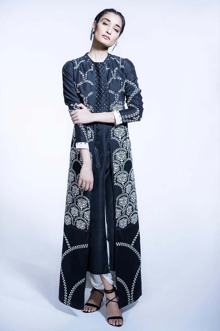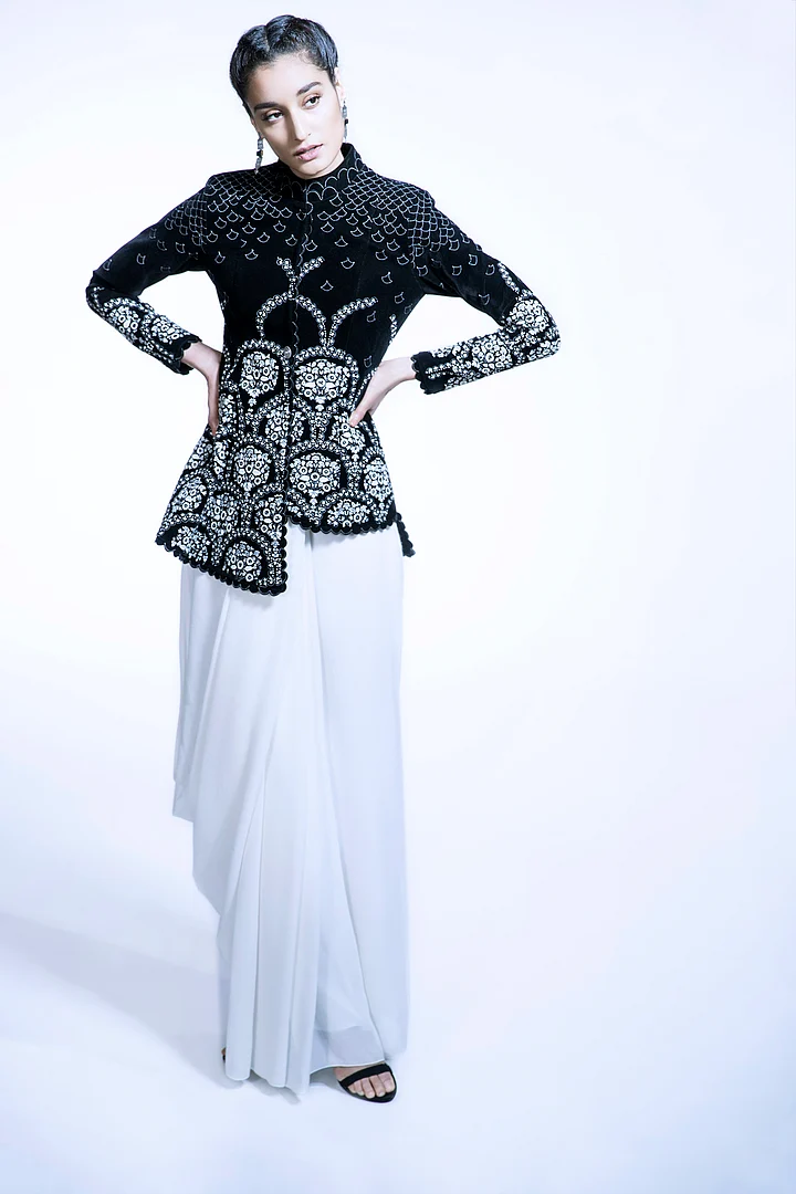 Over the years, the jacket as a silhouette has acquired an aura of its own. To people around the world it reflects sophistication, a sense of quiet confidence, power. Worn over anarkalis, lehengas or trousers, jackets add an understated glamour to a classic silhouette. Perfect for the young Indian woman, subtle sophistication is the new Bridal Mantra. Jackets, long or short, are a comfortable yet versatile must-have this season.Ankur and Priyanka Modi, AM:PM
