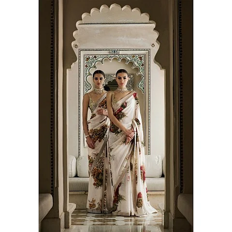 Sabyasachi: French Chiffon and European Flora and Fauna Print