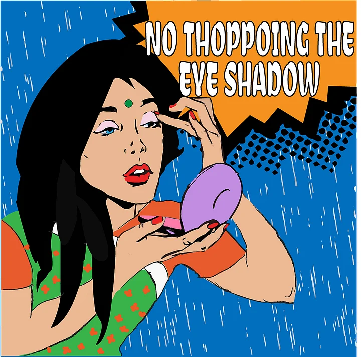 Don’t thoppo a lot of eyeshadow or there's a strong chance you'll end up looking like a ghoul when it washes away. Some light coloured eyeshadow can be trusted, and its washing away will not be as dramatic as a black eyeshadow’s.