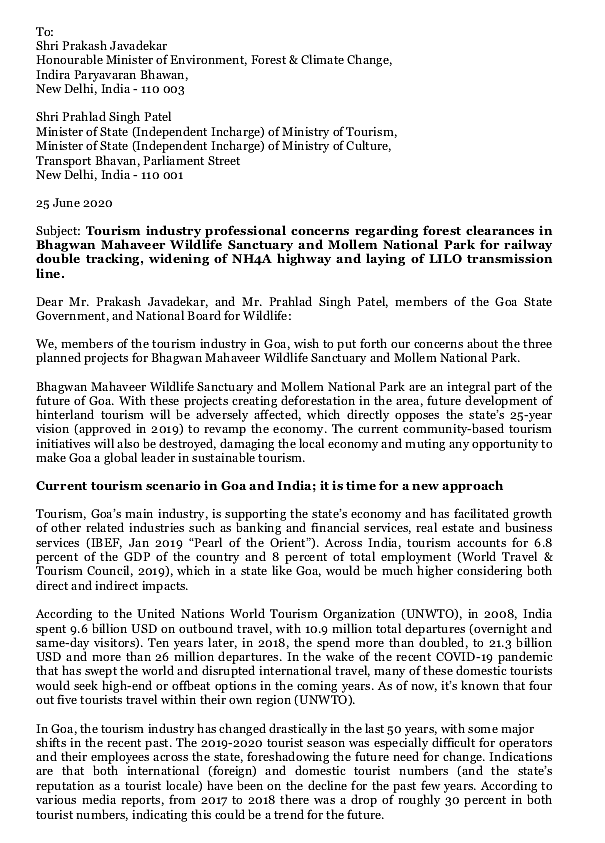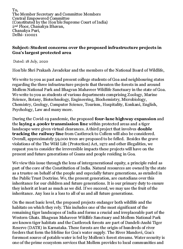 A group of more than 150 scientists, over 400 students, the Travel and Tourism Association of Goa, around 150 tourism stakeholders, more than 20 lawyers from across India, and several others have been writing letters to the Minister of Environment, Forest and Climate Change.