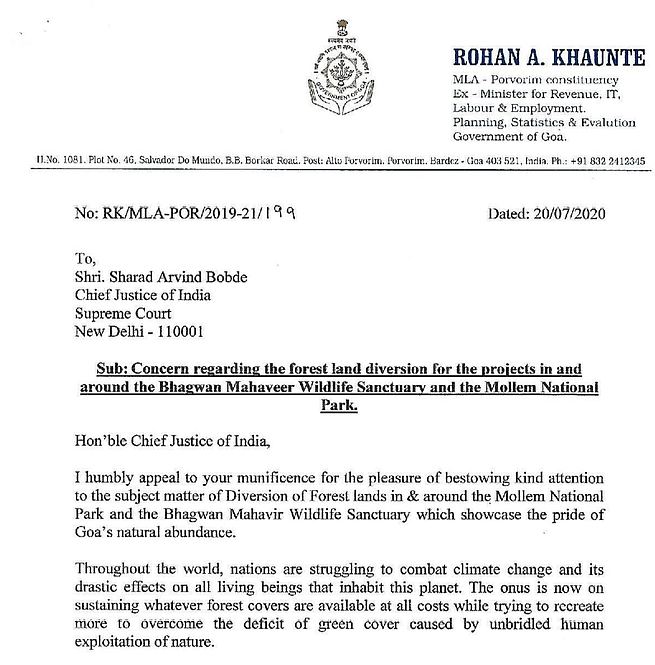 For months, Goans have been placing their concerns before the Chairperson of the National Board of Wildlife, Mr Prakash Javadekar and the state government regarding the diversion of forest land. In October, he had refused questions about the said projects.