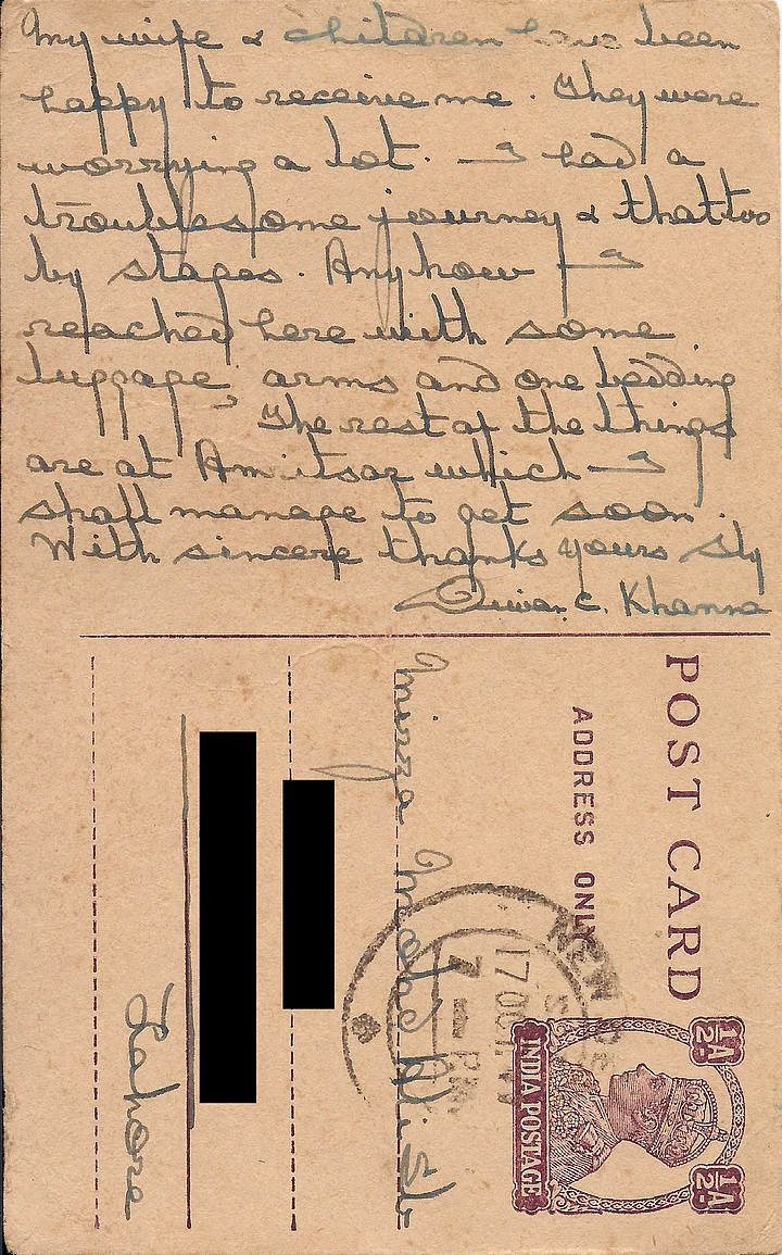 Khanna’s letter to my great-grandfather is an expression of the regret and grief that many felt at having to leave their homelands unwillingly. Many were comfortable where they were – even if the structure of the governing polity was changing – but were coerced into fleeing due to violence or the threat of it.