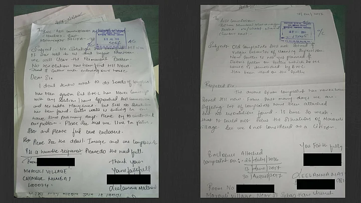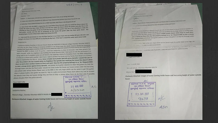Leelamma says she has been knocking at the doors of the BMC, including that of the Assistant Commissioner, for the last 11 years. She says that the officials are well versed in giving excuses, irrespective of the seriousness of the complaint lodged.