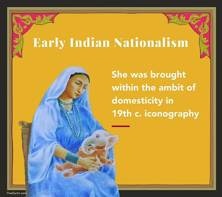 Though Gandhian nationalism recognised Sita, Damayanti, and Draupadi as the ideals of Indian womanhood, we find images around this time that depict nationalist leaders in the lap of Bharat Mata. The dominantly Hindu associations of Bharat Mata divided opinion regarding its usage as a national symbol.