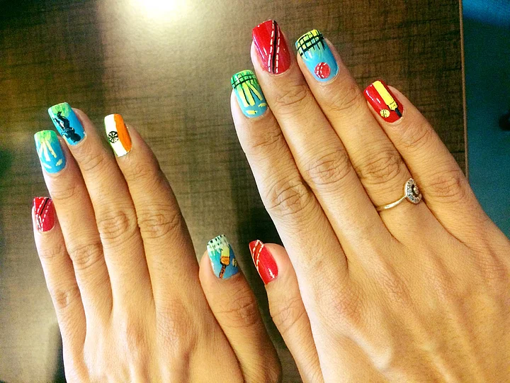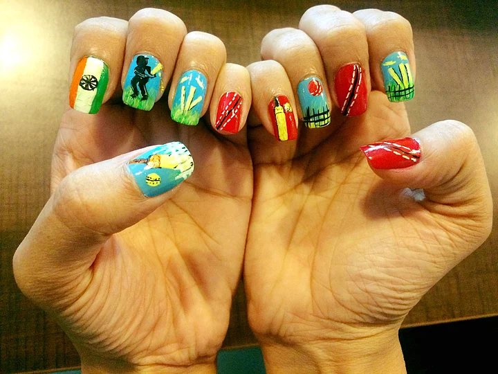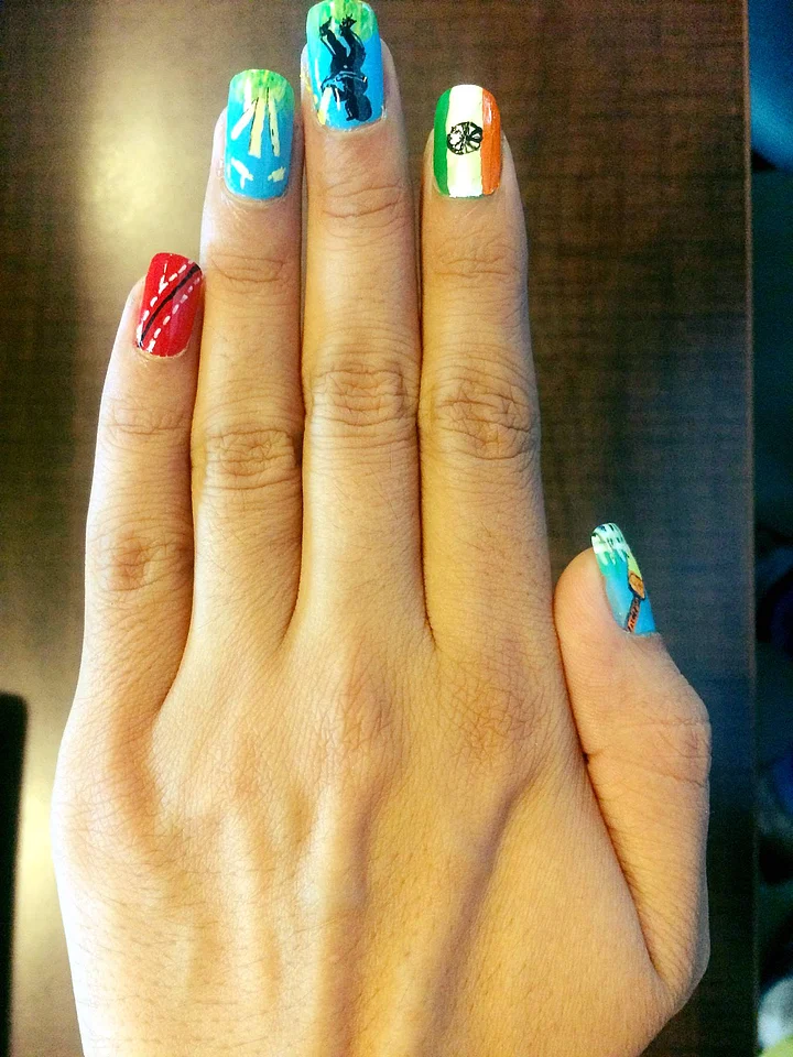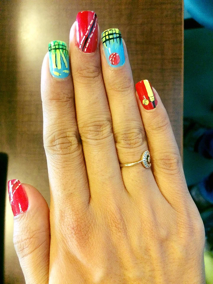 Reluctant to admit her fondness for India-Pakistan cricket matches, Gautam kept talking about the upcoming Champion’s Trophy nonchalantly. Little did she realise that instead of a plain-Jane manicure, she was getting an in-your-face CRICKET-themed nail art.