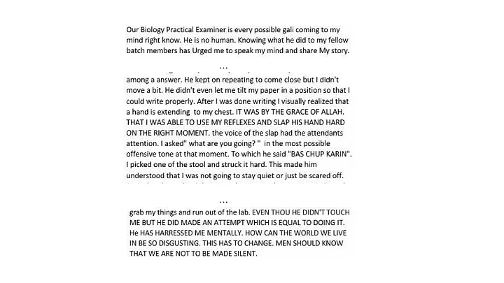 - 01/06Survivor details how the examiner harassed girls from the first group, and the ineffectiveness of the school administration(Photo: Facebook Screenshot/ edited for clarity by The Quint)