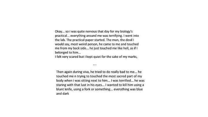 - 05/06This testimony describes the dread of a girl at observing what was happening to her closest friends without being checked by the teachers from their own school(Photo: Facebook Screenshot/ edited for clarity by The Quint)
