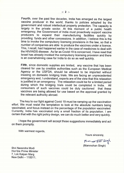 Amid concerns over the rising COVID cases in India, former prime minister and senior Congress leader Manmohan Singh wrote a letter to Prime Minister Narendra Modi and gave him five suggestions to tackle the COVID-19 crisis.