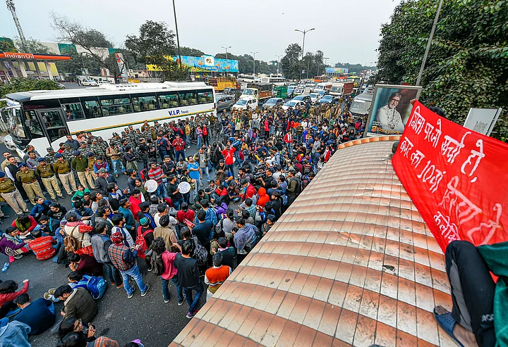 The students circulated photos, claiming police have closed all gates of the university before beginning the march. As they began, they shouted slogans like "Delhi Police go back" and "Education must be free for all".
