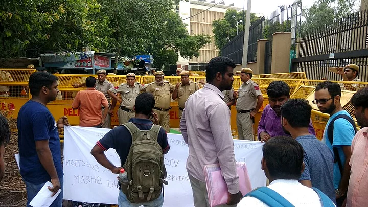 At least 20 students sat down to protest the omission outside the UGC’s office in New Delhi on 12 July.