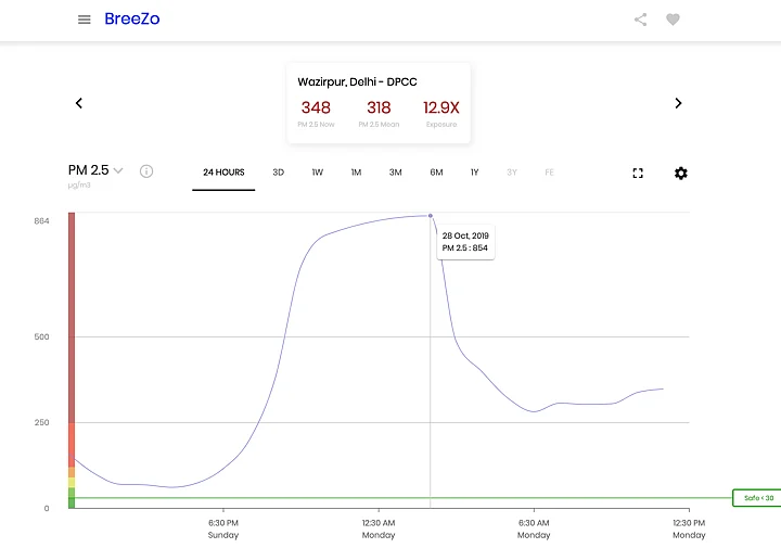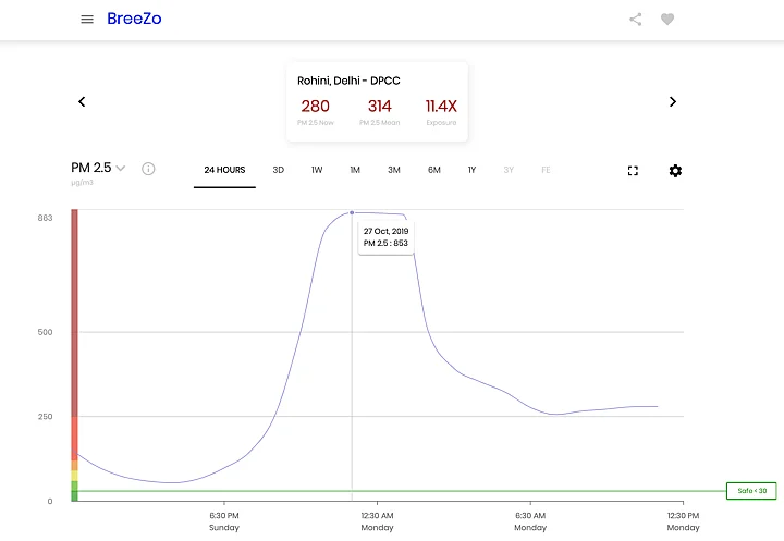 While the independent reading recorded by aqicn.org put the AQI level at 999, news agency PTI quoted government’s air quality monitors to put it at 327 at 11 pm and dipped to 323 at 3:30 am