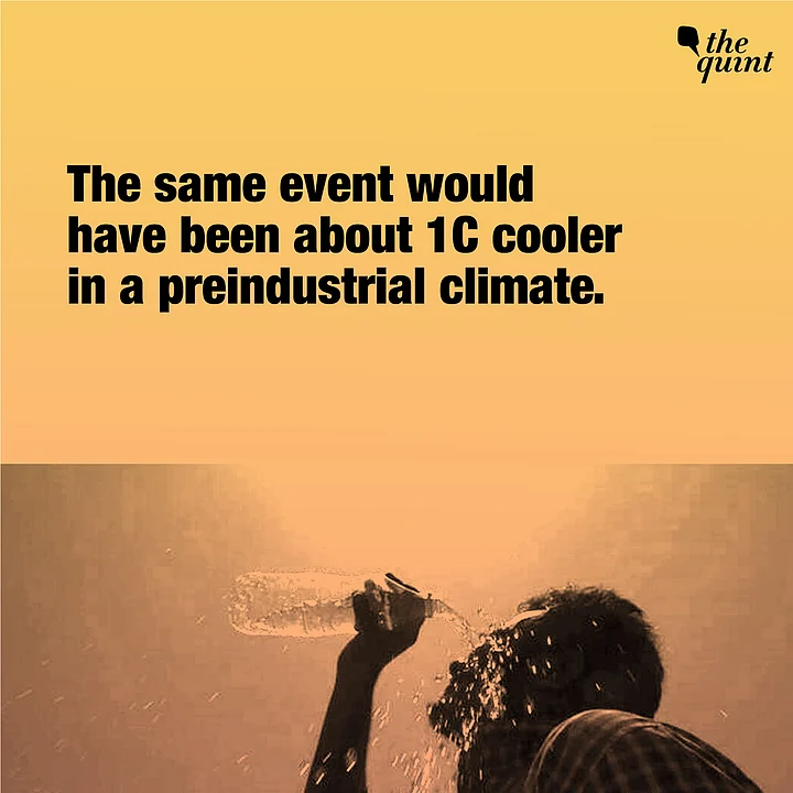 The same event would have been about 1C cooler in a preindustrial climate. (Preindustrial climate would mean the global temperatures before the industrial revolution which were 1.1 C cooler than today.)
