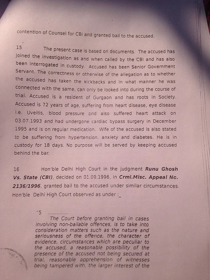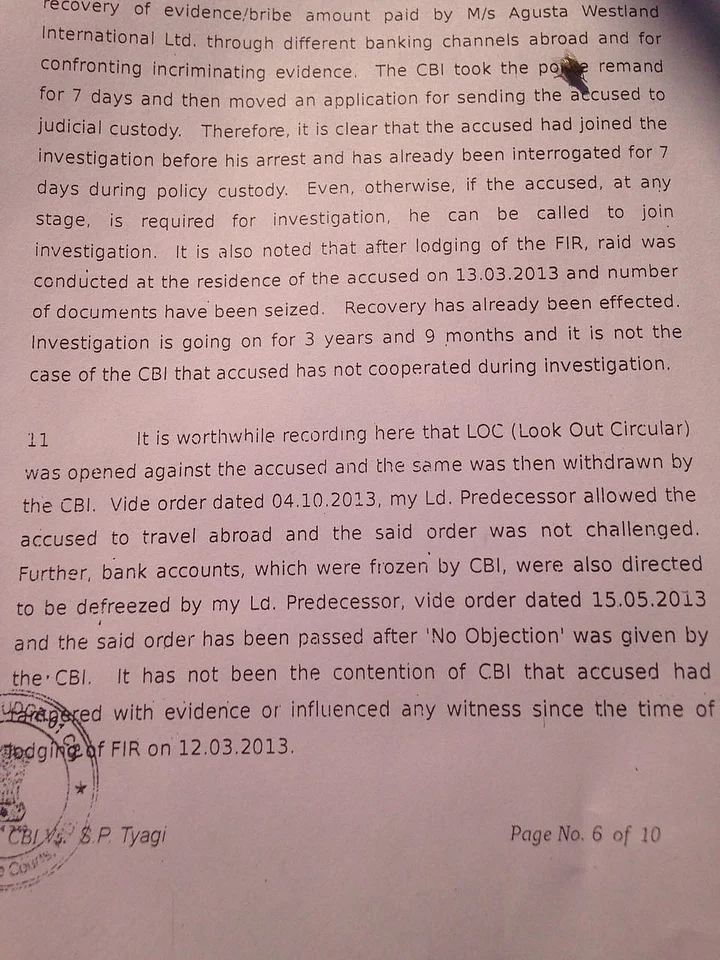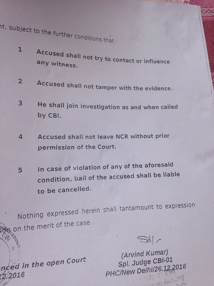 Central Bureau of Investigation (CBI) Special Judge Arvind Kumar allowed Tyagi's bail application and asked him to furnish a personal bond of Rs 2 lakh, and a surety of a like amount.