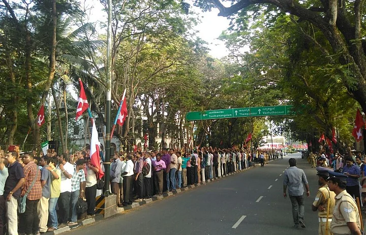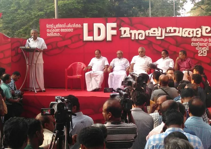 Led by Kerala Chief Minister Pinarayi Vijayan and former Chief Minister VS Achuthanandan, the CPI-M led ruling Left Democratic Front (LDF) in Kerala on Thursday formed a human chain extending from Raj Bhavan to Kasargode, to show displeasure against the Modi government's demonetisation move.