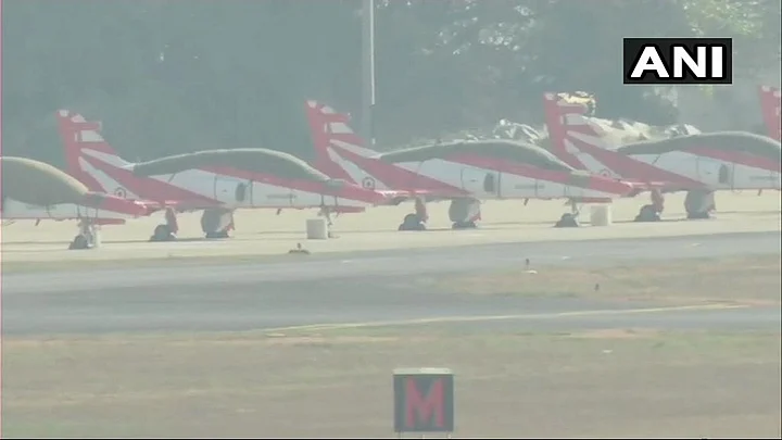 As the event began on Wednesday, the aircraft of the Suryakiran aerobatics team stood with their canopies covered on the runway behind the inaugural venue. The aircraft are not participating in the show due to the mishap.