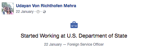 He claims to be from San Diego and a student of NYU in the politics department. He also claims to have worked at the United Nations and currently is a Foreign Service Officer at the US Department of State.