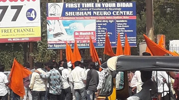 Days after school authorities and a journalist were booked for the ‘seditious’ play, Akhil Bharatiya Vidya Parishad members on Wednesday, 29 January staged a protest outside the Bidar district commissioner’s office at Ambedkar circle.