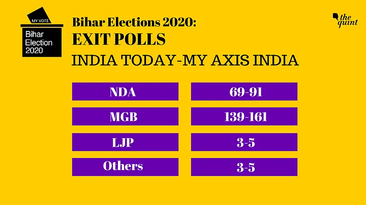 The India-Today- My Axis India is the only survey that has predicted a clear victory for the Mahagathbandhan.