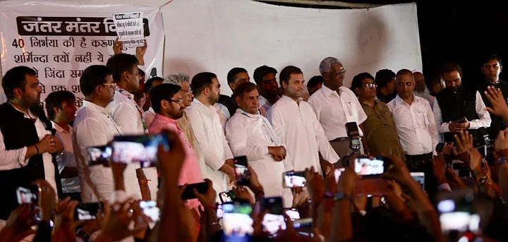 Congress President Rahul Gandhi on Friday, 4 August, shared the stage with top Opposition leaders including Left’s D Raja and Sitaram Yechury, former JD(U) leader Sharad Yadav and TMC’s Dinesh Trivedi at the protest against the mass rape in Bihar’s Muzaffarpur that recently came to light.