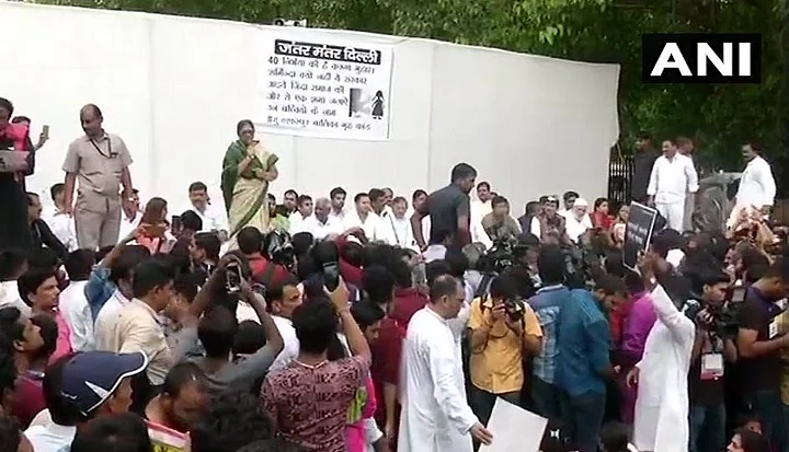 The protest was led by Rashtriya Janata Dal (RJD) leader Tejashwi Yadav at Delhi’s Jantar Mantar.