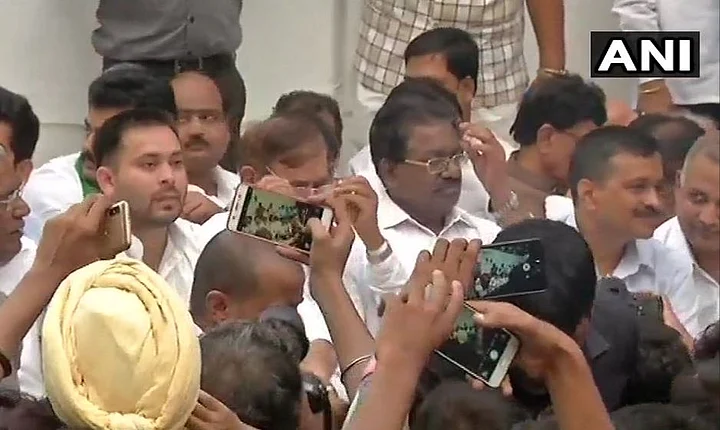 AAP’s Arvind Kejriwal, who met Tejashwi at the venue earlier in the evening, seemed to have left the venue before Gandhi arrived.