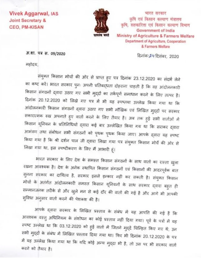The Sanyukt Kisan Morcha, on behalf of its 40 farmer union members, will meet on Friday, 25 December, to discuss the letter and formally respond to it.