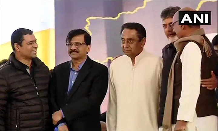 Congress President Rahul Gandhi, Former Prime Minister Manmohan Singh, National Conference's Farooq Abdullah and NCP's Majeed Memon were among the political leaders who joined Naidu's protest at the Andhra Pradesh Bhawan on Monday.