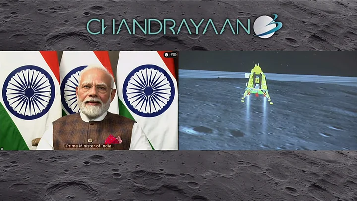 Prime Minister Narendra Modi congratulated ISRO (Indian Space Research Organisation) via live video from South Africa. "Like our scientists said, India is on the Moon now," he said on the historic feat.