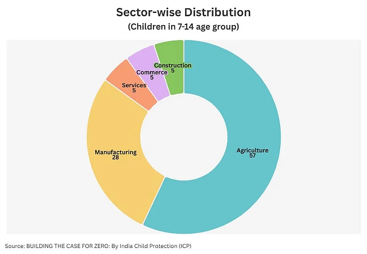 Among the child workers in the 7-14 age group, a majority are involved in agriculture followed by manufacturing.