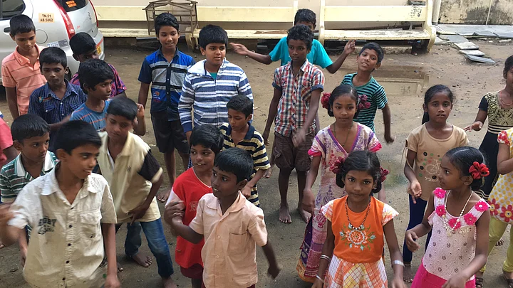 A car pulled in and these children rushed to say hello and brief 'Appa’ on everything that happened in school. The screams of 'Appa, listen' echoed and the man smiled, attending to each one and patiently listening to their stories.