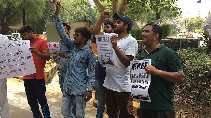 Protesters at Jantar Mantar demanded immediate and unconditional release of the five activists, who are still in police custody.