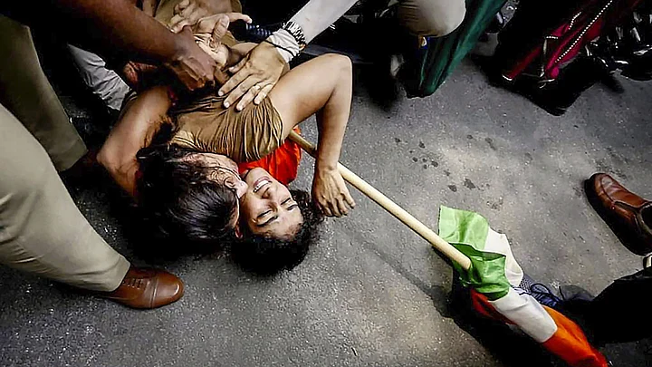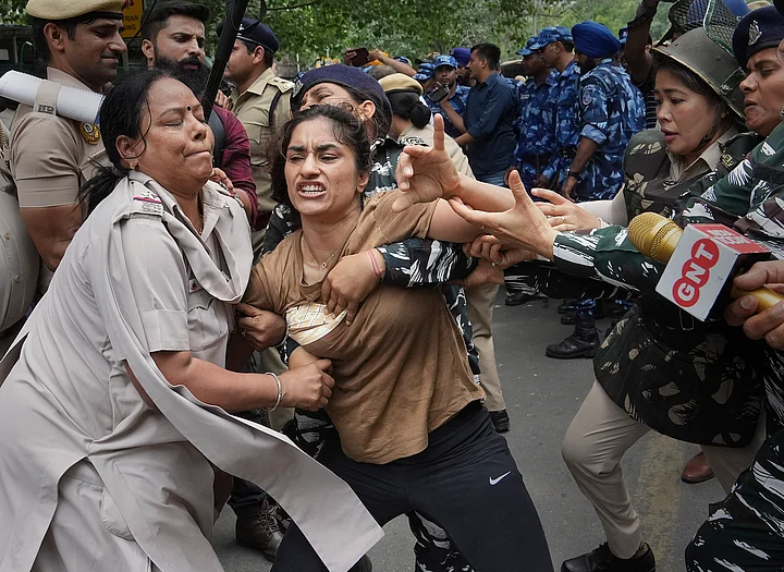 Earlier in the day, harrowing visuals poured in from the national capital showing large groups of police personnel apparently dragging and detaining some of the Olympic-medal-winning wrestlers.