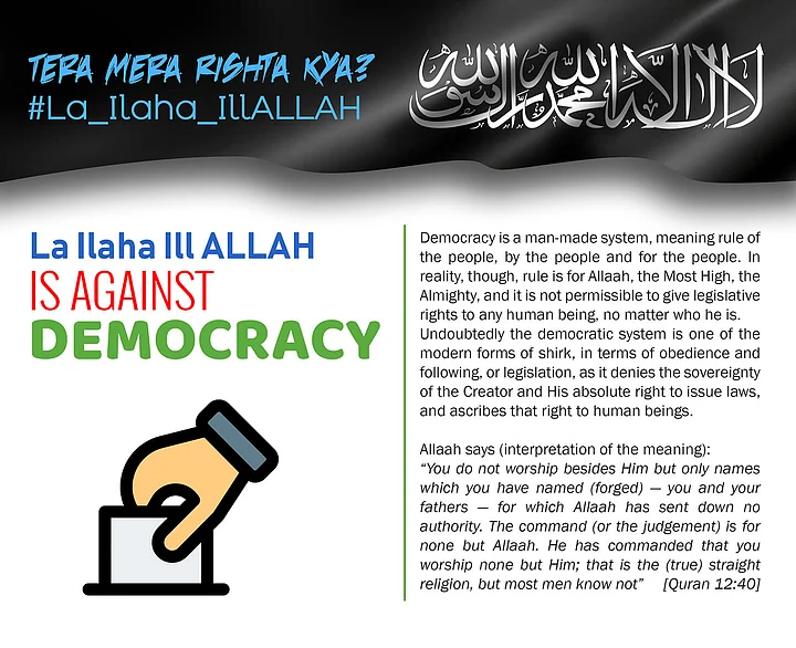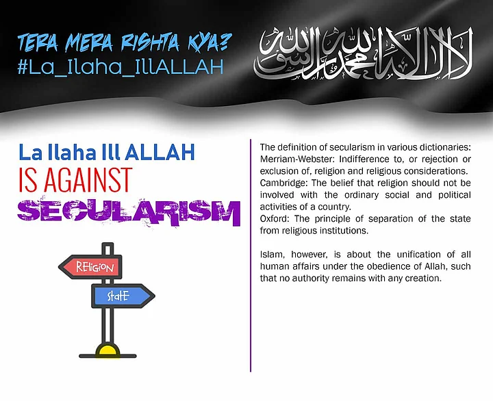 The first on 23 February saying :"La ilaha illallah Muhammadur Rasulullah" (There is no God but Allah and Muhammad is his Prophet) is against Nationalism." The second also on 23 February saying: "La ilaha illallah Muhammadur Rasulullah is against Democracy." And on 25 February: La ilaha illallah Muhammadur Rasulullah is against Secularism.