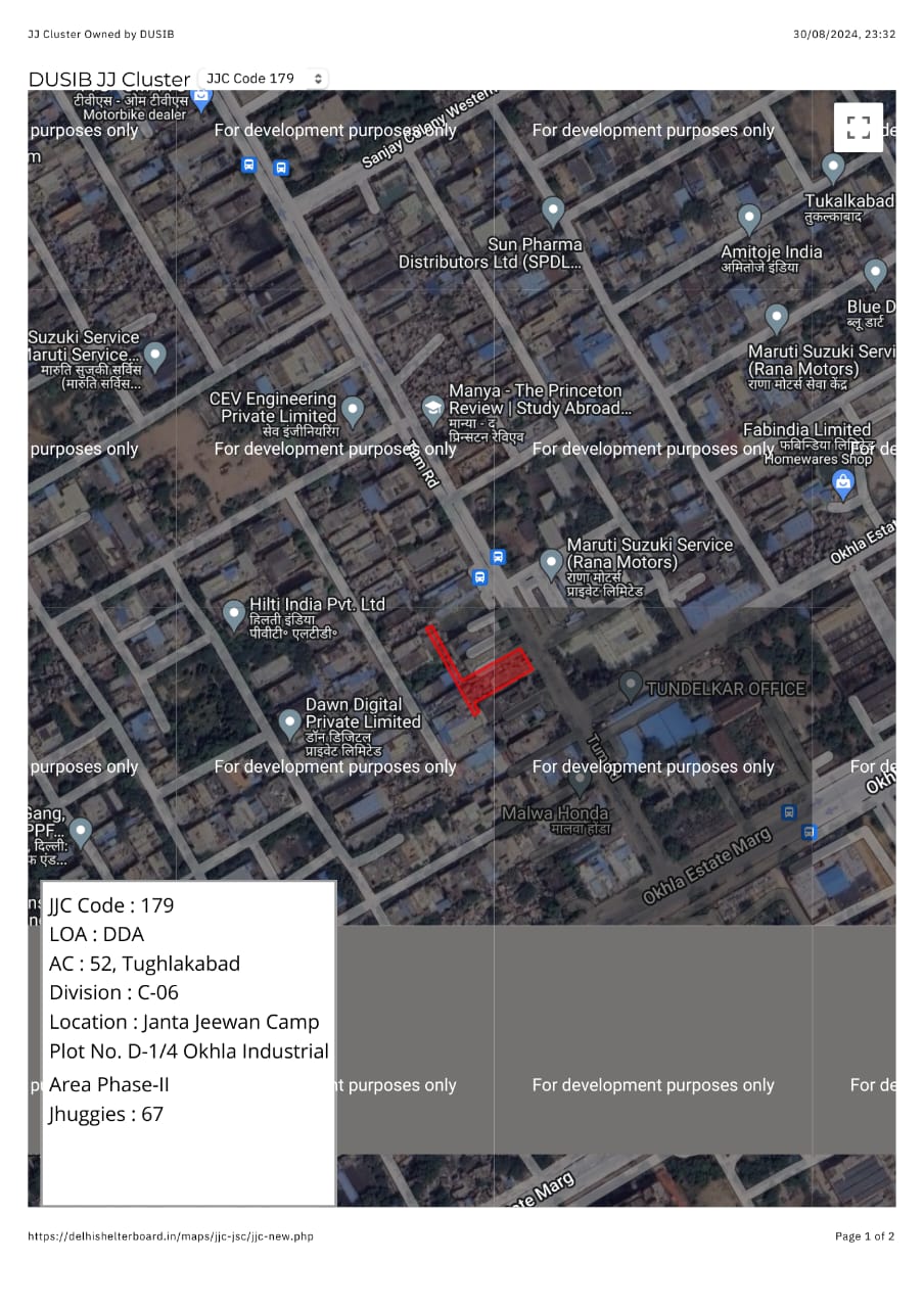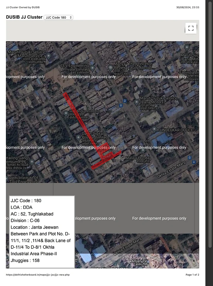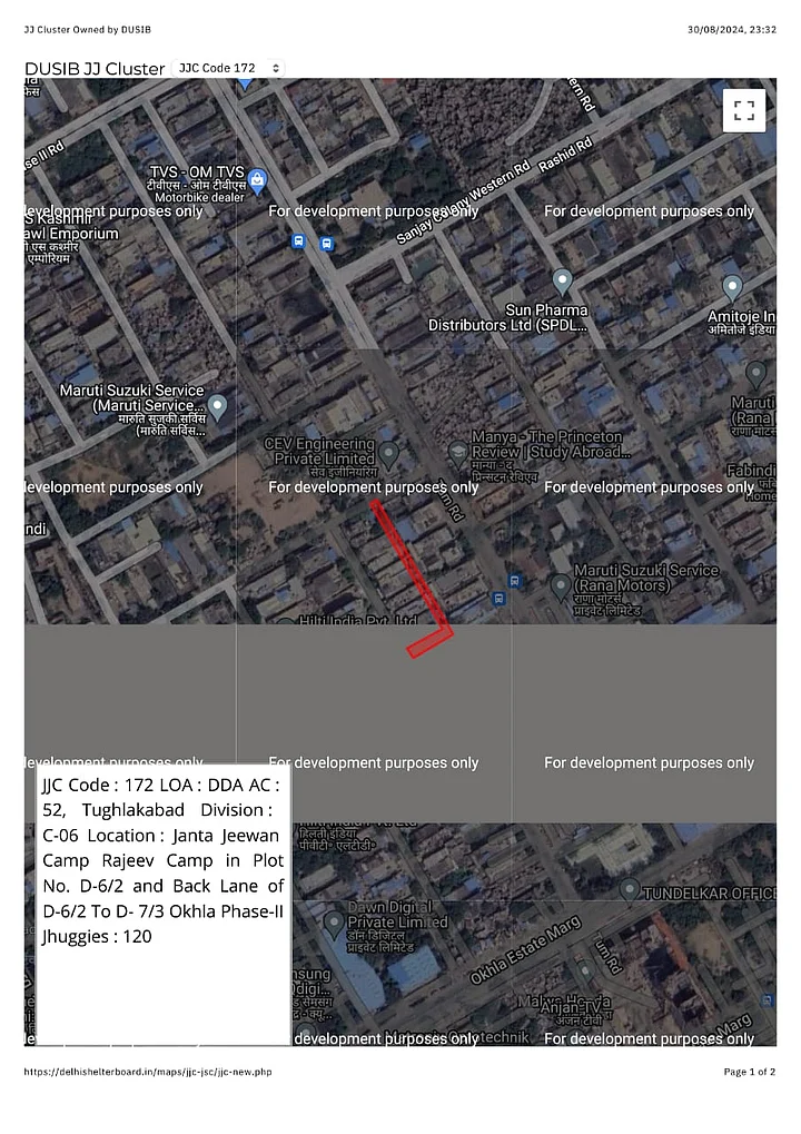 She explained that the boundaries of these JJ bastis have been clearly defined and published on DUSIB's website — highlighted in red on an aerial map of the area (photographs below).
