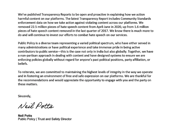 The response comes after Congress wrote two letters to Facebook CEO Mark Zuckerberg, asking him what specific steps have been taken by Facebook to investigate the charges against its ‘hate speech operations’ in India.