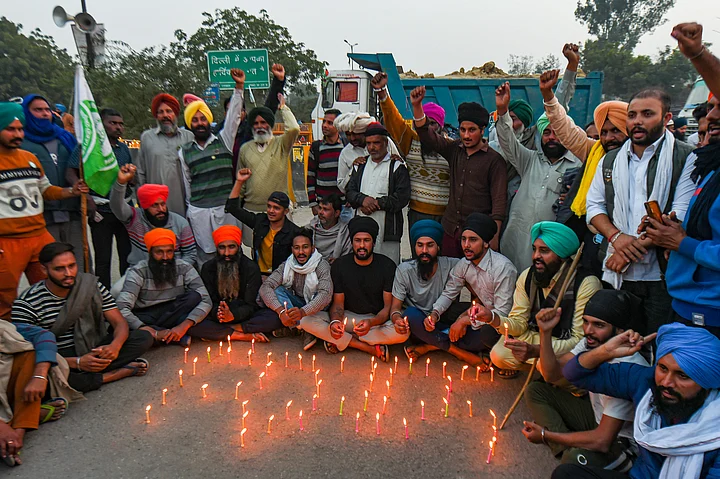 Farmers lit candles on the occasion of birth anniversary of Guru Nanak Dev at the Singhu border, during their ongoing Delhi Chalo protest against Centres new farm laws, reported news agency PTI.