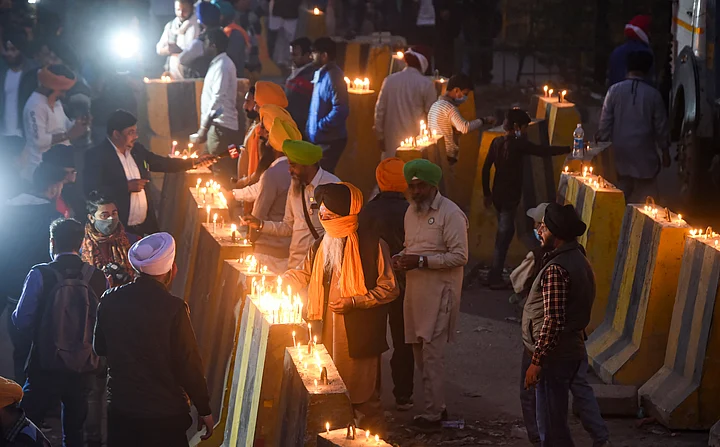 Farmers at Singhu Border Light Candles to Celebrate Gurupurab