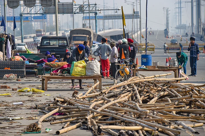 Farmers were seen dismantling their makeshift accommodations at the borders where they lived while protesting against the laws.
