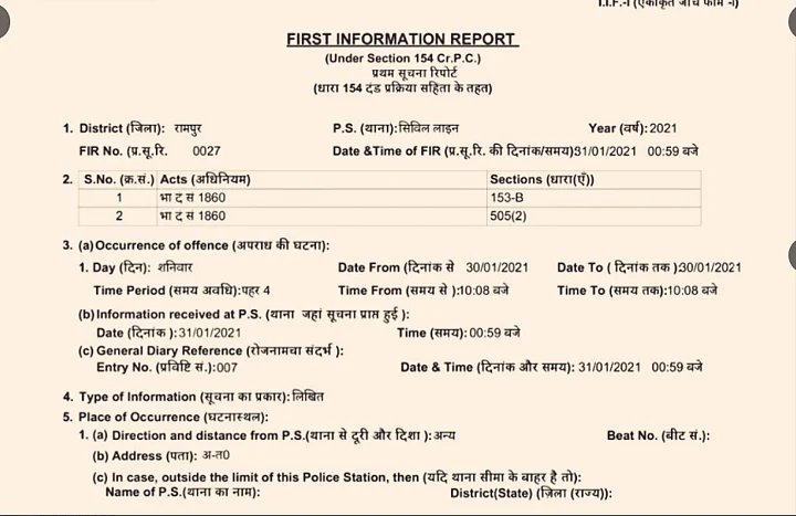 As per The Print, the FIR was filed on a complaint by one Sanju Turaha, a resident of Rampur district.