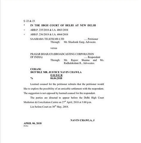Trouble seems to be brewing in the television industry as two big names have been locked in a bitter dispute since last few months and now the matter is being fought out in the court. Mumbai based production house Saai Baba Telefilms have filed a case against Prasar Bharti (Broadcasting Corporation of India) under Section 11 of the Arbitration & Conciliation Act, 1996.