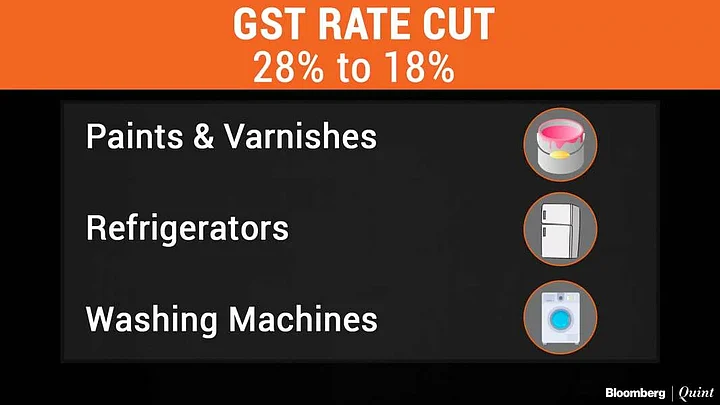The GST Council has reduced the tax rate on over 50 goods, including washing machines, refrigerators, vacuum cleaners, paints, ethanol, cosmetics, sanitary napkins.
