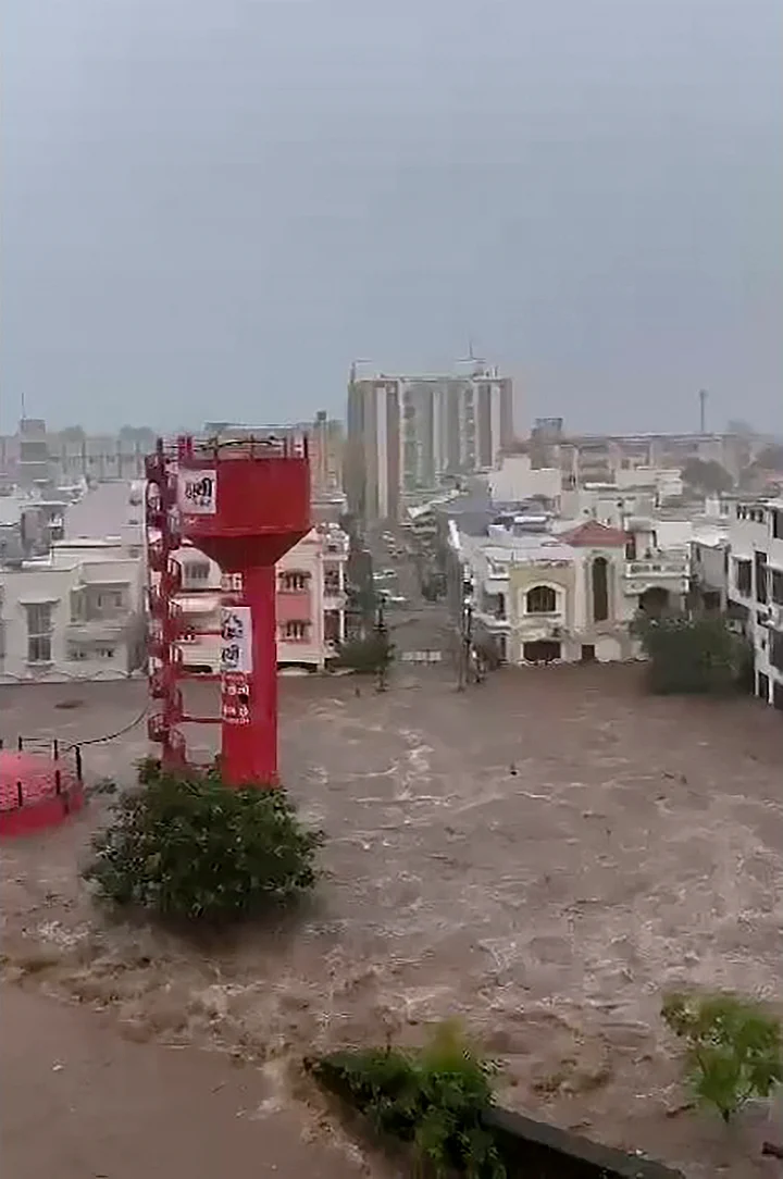 Between 10am and 4pm on Saturday, Junagadh reportedly received nine inches of rain. The extreme amount of rain overwhelmed the rivers flowing through the city, as the intensity of the downpour also increased as the day progressed.