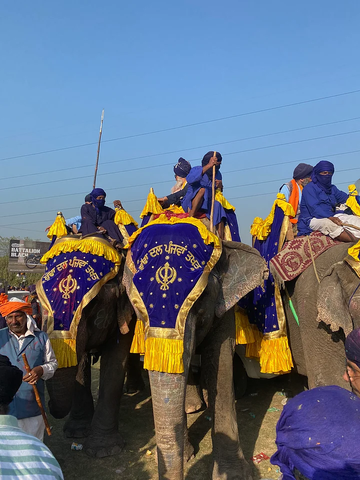 Usually white, the city is decked with colours. Saffron, yellow and blue Nishan Sahib flags flutter from rooftops and gurdwaras, while colourful clouds of gulaal drift through the air. The roads are overflowing with thousands of cars, tractors, buses, trolleys and pedestrians — inching forward in long lines. Hundreds of horses trot past the crowds, and somewhere in the distance, a few camels and elephants grace the procession. Lakhs of people have gathered here from across Punjab and beyond.